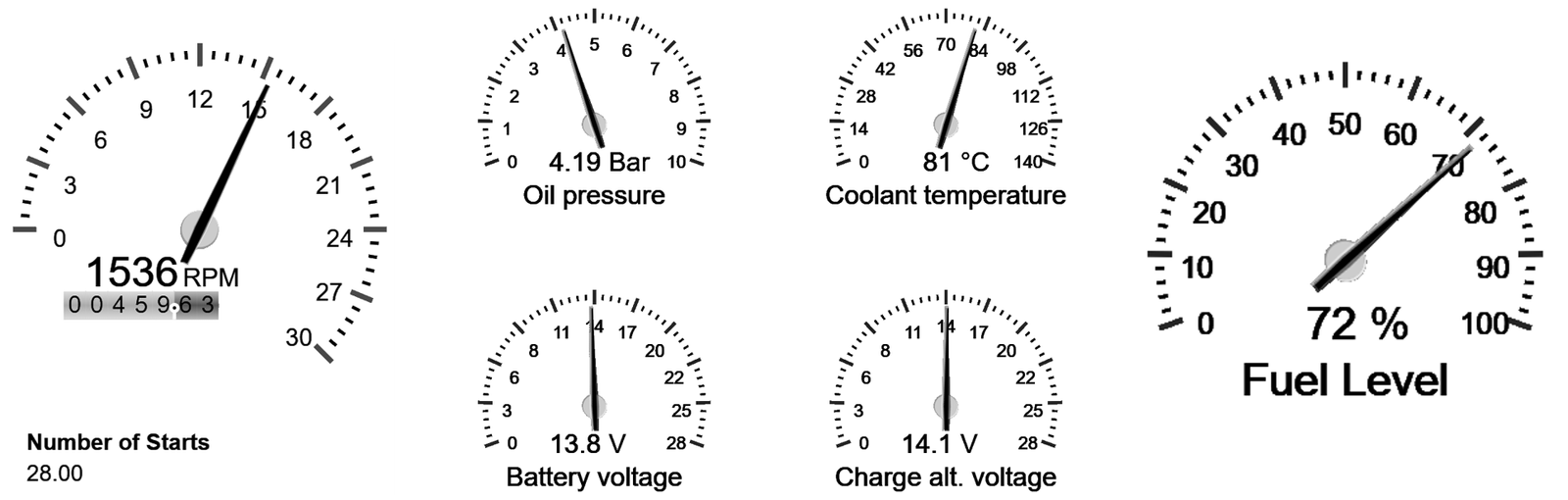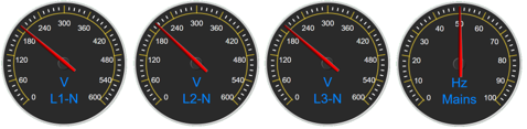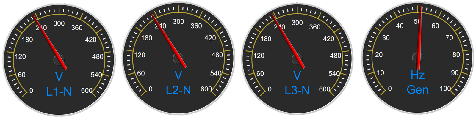 Surveillance en direct de la tension et de la fréquence fournies par le groupe électrogène.